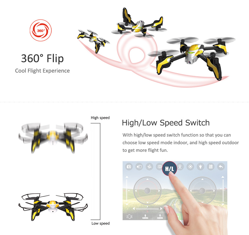 High/low flying speed switch mode and 3D eversion function let you have a cool flying play experience.