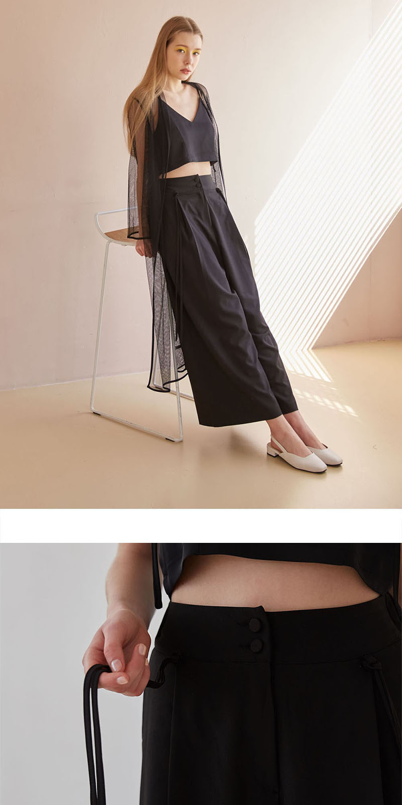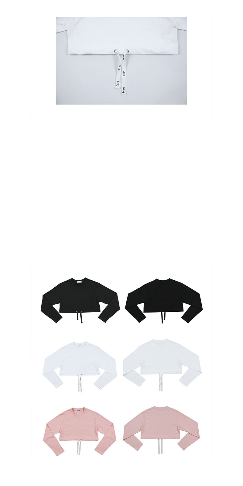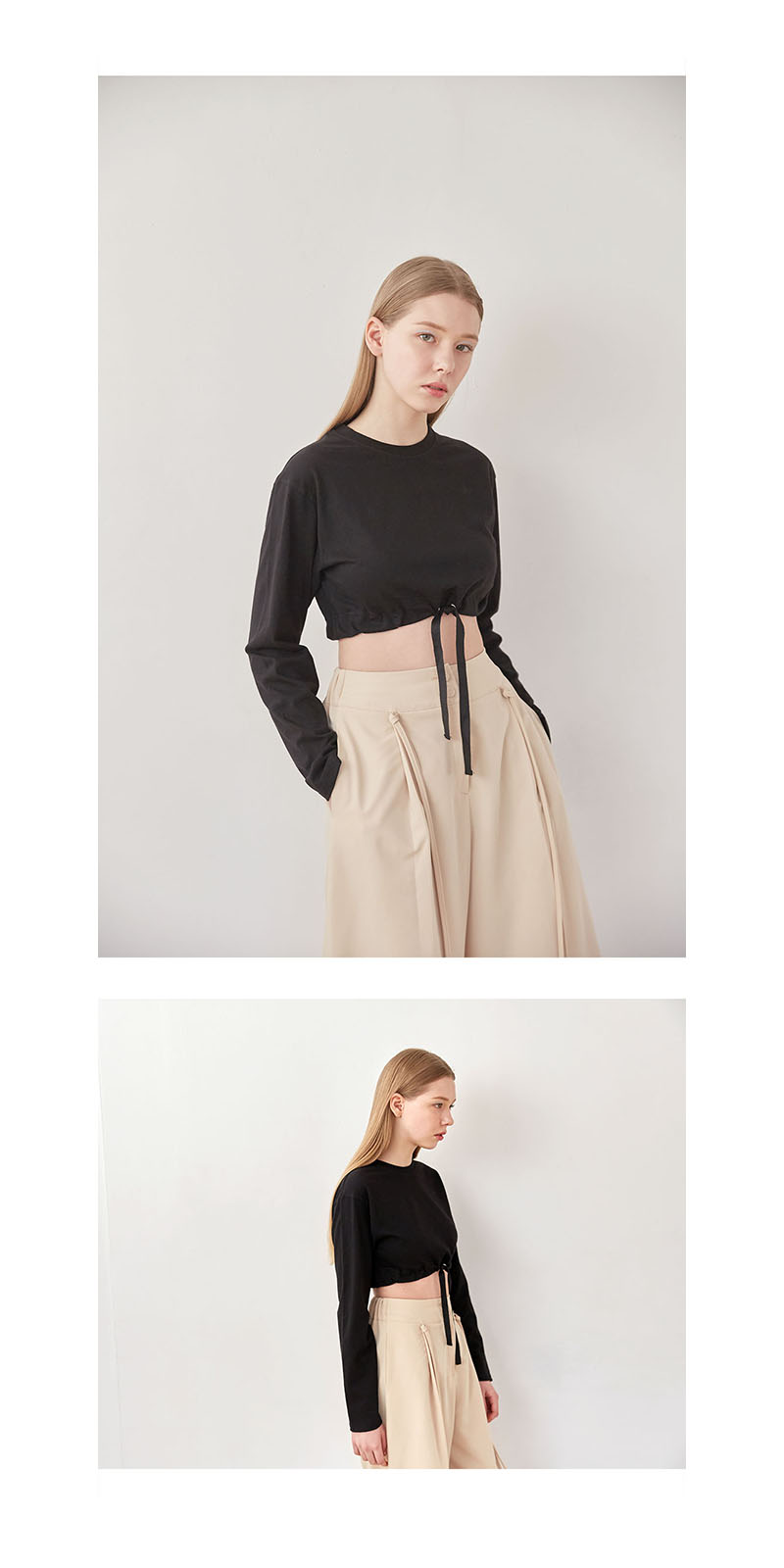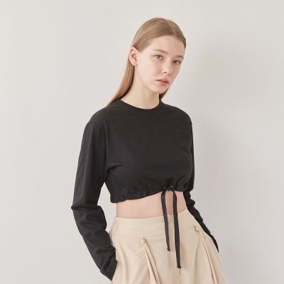 허리의 끈으로 조여 입을 수 있는 롱 슬리브 크롭 티셔츠