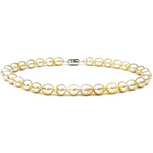 -. Title : 8-11mm South Sea Light Gold Baroque Cultured Pearl Necklace 925 Sterling Silver Clasp 17inch (43cm)