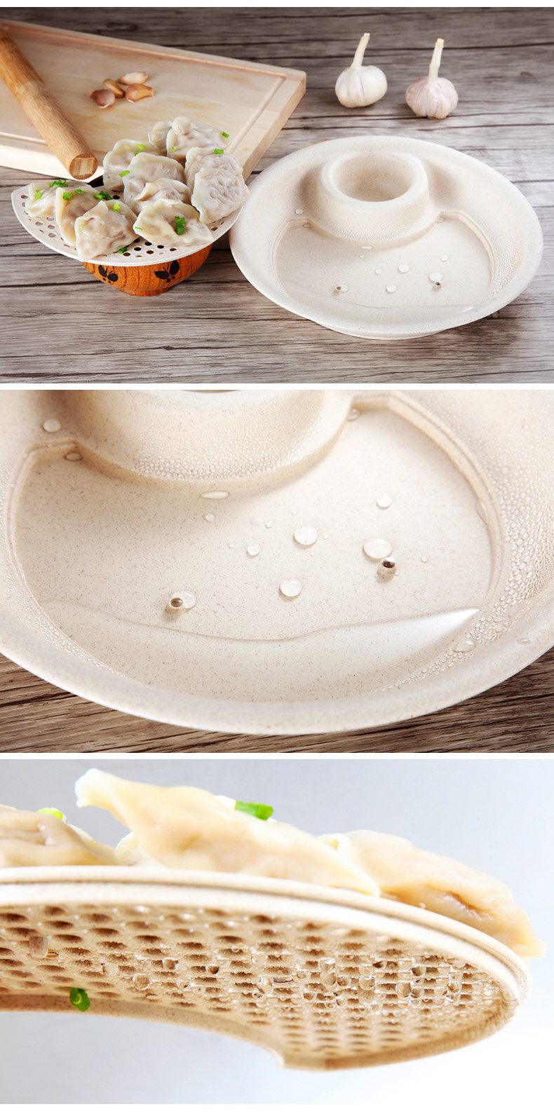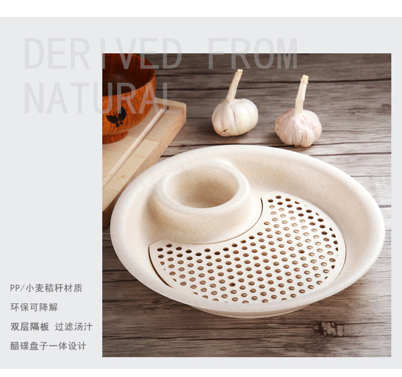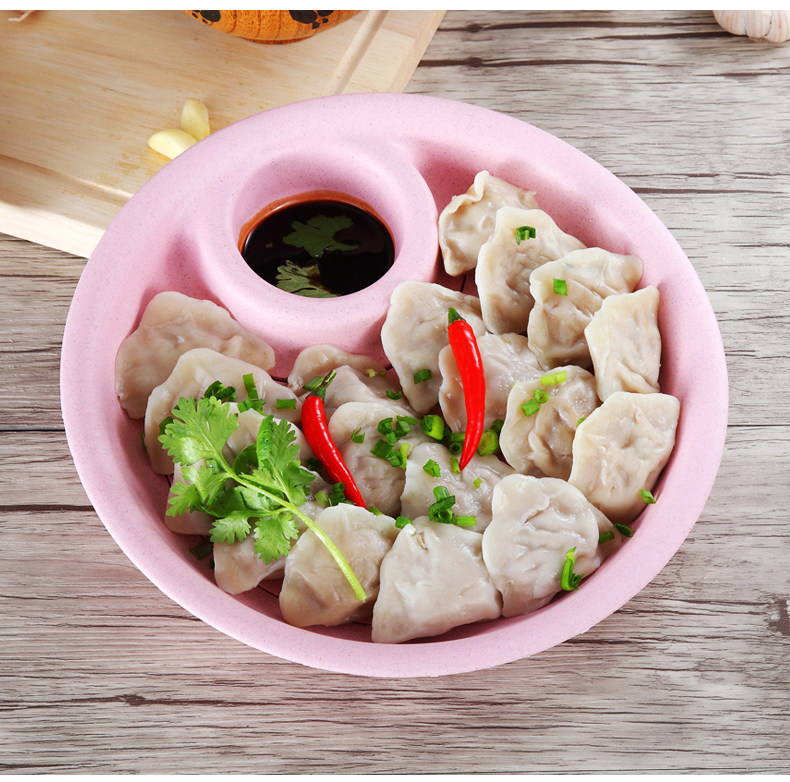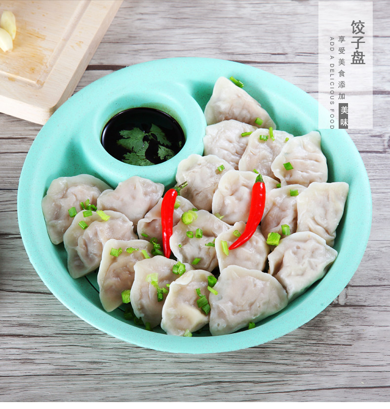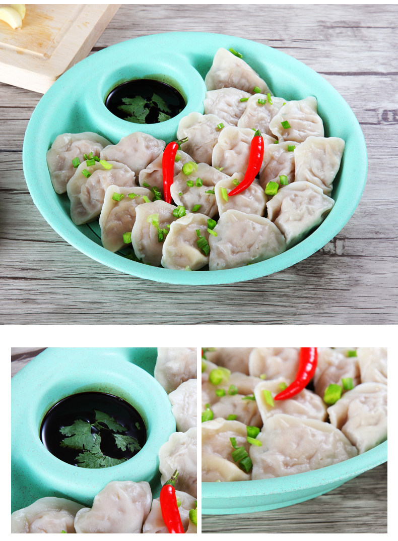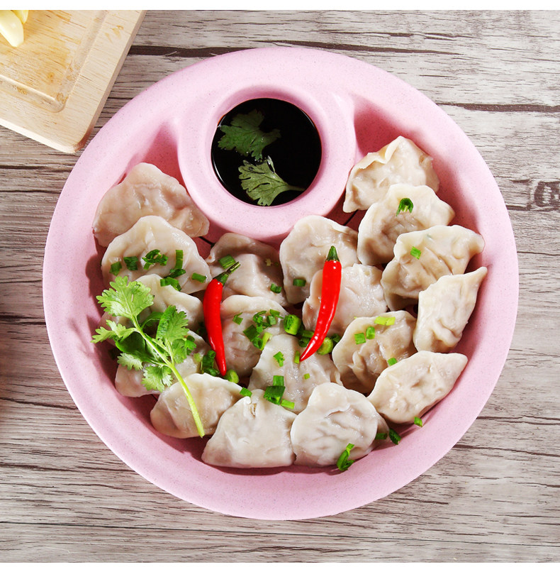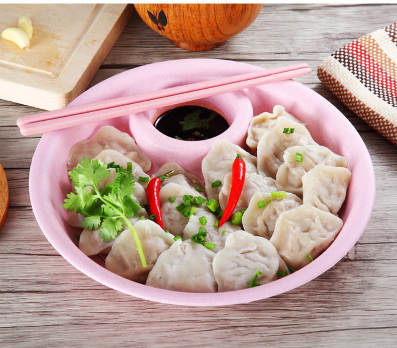 小麦秸秆饺子盘带醋碟水饺盘创意扇形餐盘水果盘厨房双层沥水盘