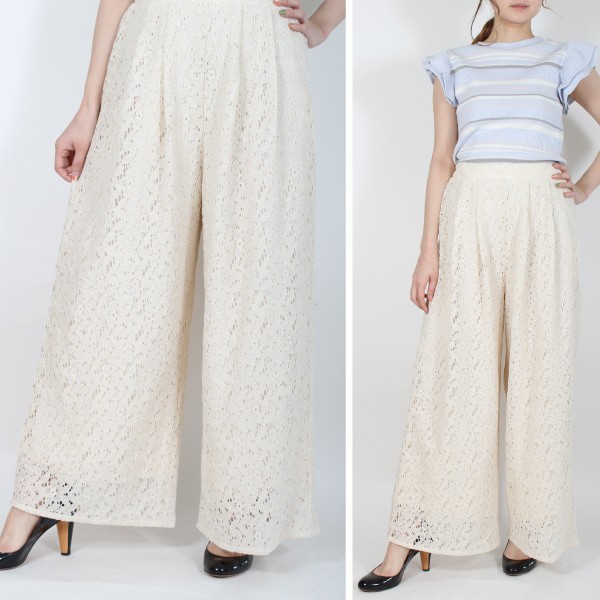 | 実寸 | ボトム丈:98cm、ウエスト:66cm(ゴム)、ヒップ:104.5+cm、前ワタリ:37cm、後ワタリ:43cm、前股上:35cm、後股上:36cm、裾周り:68cm、股ぐり:80.5cm |
