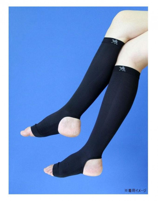 ふくらはぎから足首に向かって段階的に圧力を強めていくグラデーション(段階圧力)設計。土踏まず部分は凹凸編みなので気持ちよく足裏を刺激してくれます。ムレにくく快適!さらに伸縮性があり履き心地が良いトレンカです。