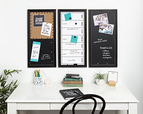 Use this functional and decorative magnetic chalkboard to get your life organized! this decorative wall board has a wide chalkboard surface that is also magnetic! this board has a solid brushed textured frame with a thin white accent line on the edges for a contemporary update to the classic transitional frame. Use this magnetic chalkboard for maximum organization in your entry way, kitchen, or home office.Feature