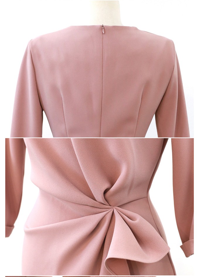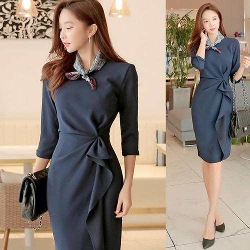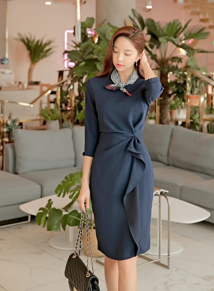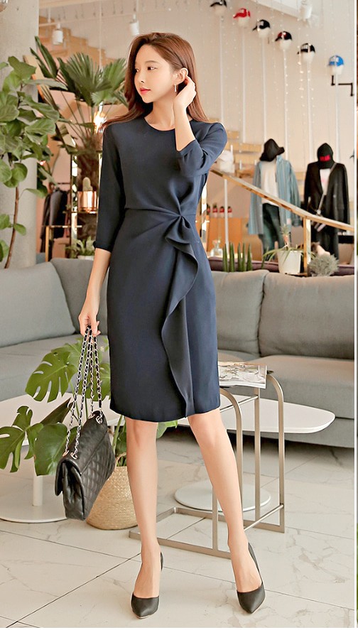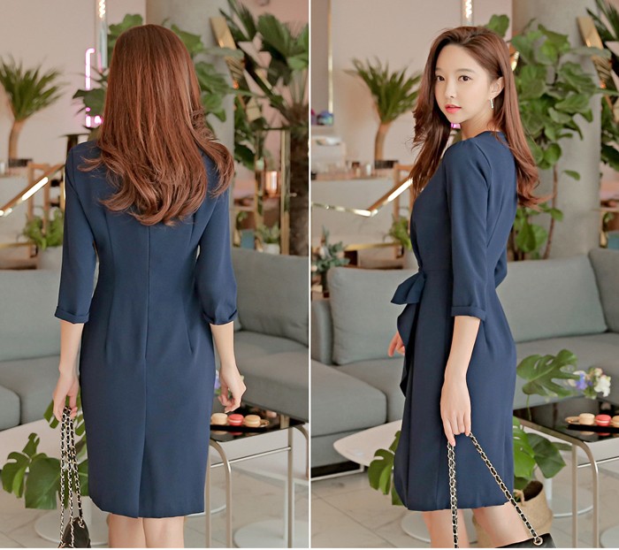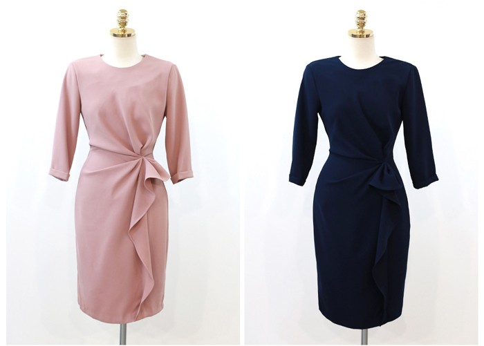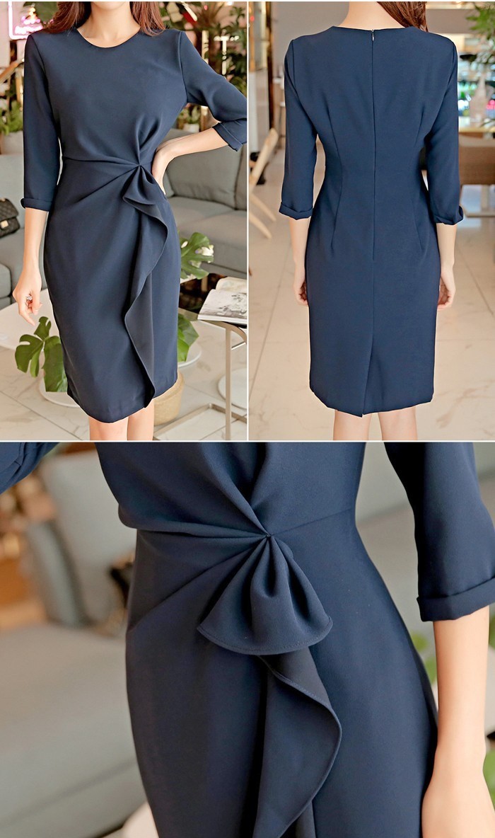 商品名:タイトワンピース 膝丈 無地 7分袖 きれいめ 通勤
