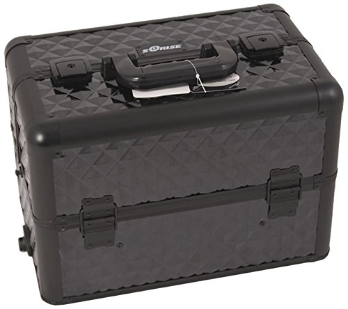 Craft Accents Slide Tray Professional Aluminum Cosmetic Makeup Case, All Black Diamond Pattern, 144 Ounce