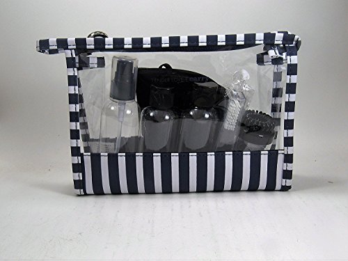 Travel Bag With Eye Mask And Bottles Toothbursh Spray Bottle in Navy White And Clear Bag