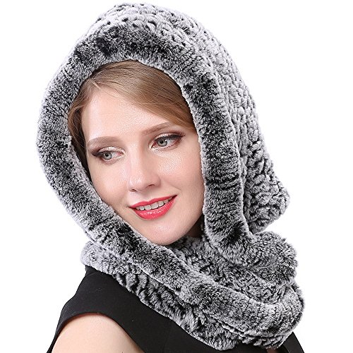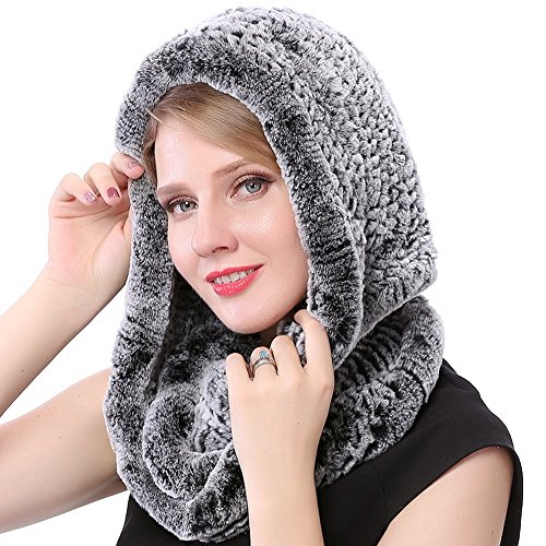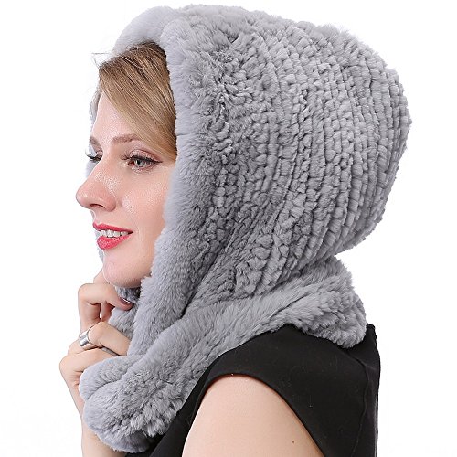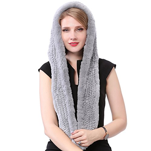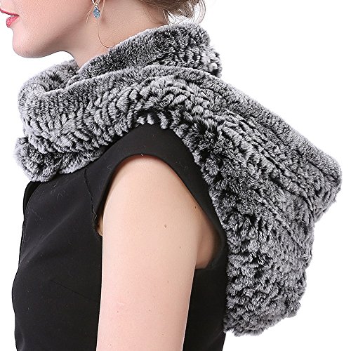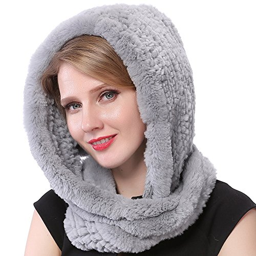 Product Description Valpeak Womens Knitted Real Rabbit Fur Hooded scarf is soft. Simple dense traditional weaving methods, to make it more elegant, warm and stylish double overall. 0