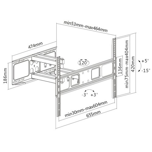 -. Feature : Does Not Support 24" Studs. Suitable for use with Solid Walls, 12" or 16" studs. / Universal design which will suit nearly all 37" to 70" (and some larger) Flat Screen or Curved TV's. Suits most common VESA Mounting Dimensions including: 200x200, 400x200, 300x300, 400x400, 600x400. Low profile mount with a minimum of 53mm off the wall which allows the mount to sit quite close to the wall for a full motion design. / Quick and easy to install. Comes with mounting hardware and full instructions. / Full Motion Movement with +/- 60 degree swivel and +5 degree up / -15 degree down tilt function which securely holds in place. / Suits TV's From Samsung, Sony, Vizio, LG, Panasonic and almost all other manufactures.