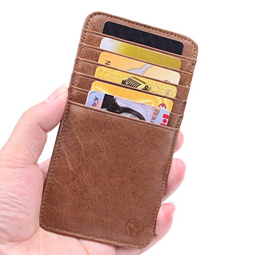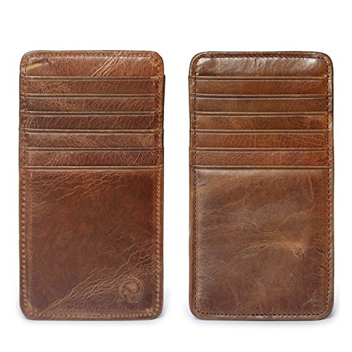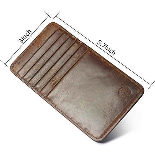 -. Feature : GENUINE LEATHER: This credit card is crafted out of a fine quality cowhide leather in a lage brown black color, making it smooth, soft and stylish. / JUST THE RIGHT SIZE: Our credit card purse measures 5.7 Inches long,3 Inches tall & 0.1 Inches thick, which means it is slim enough to fit perfectly in your pocket or in your briefcase. / 12 CREDIT CARD SLOTS: The double-sided credit card wallet offers a total of 12 card slots, 6 on each side. Use them to carry your credit cards, debit cards, gym cards, library cards or membership cards. / THIN & LIGHTWEIGHT: Weighing in at only 0.6 Ounces, this slim leather men's credit card holder is quite easy to carry. You likely won't even notice it when it's sitting in your pocket! / EXCELLENT GIFT IDEA: These men's leather credit card holders make a terrific gift idea for men. Give one to your dad, hubby, brother or friend on special occasions such as his birthday, his graduation, Christmas or his retirement.