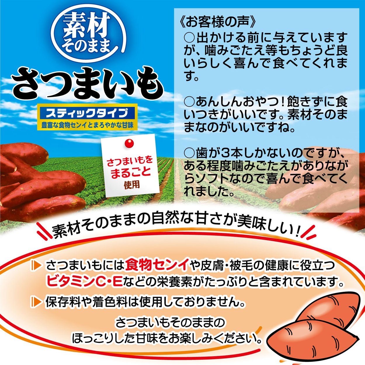豊富な食物センイとまろやかな甘味。さつまいもをまるごと使用。
