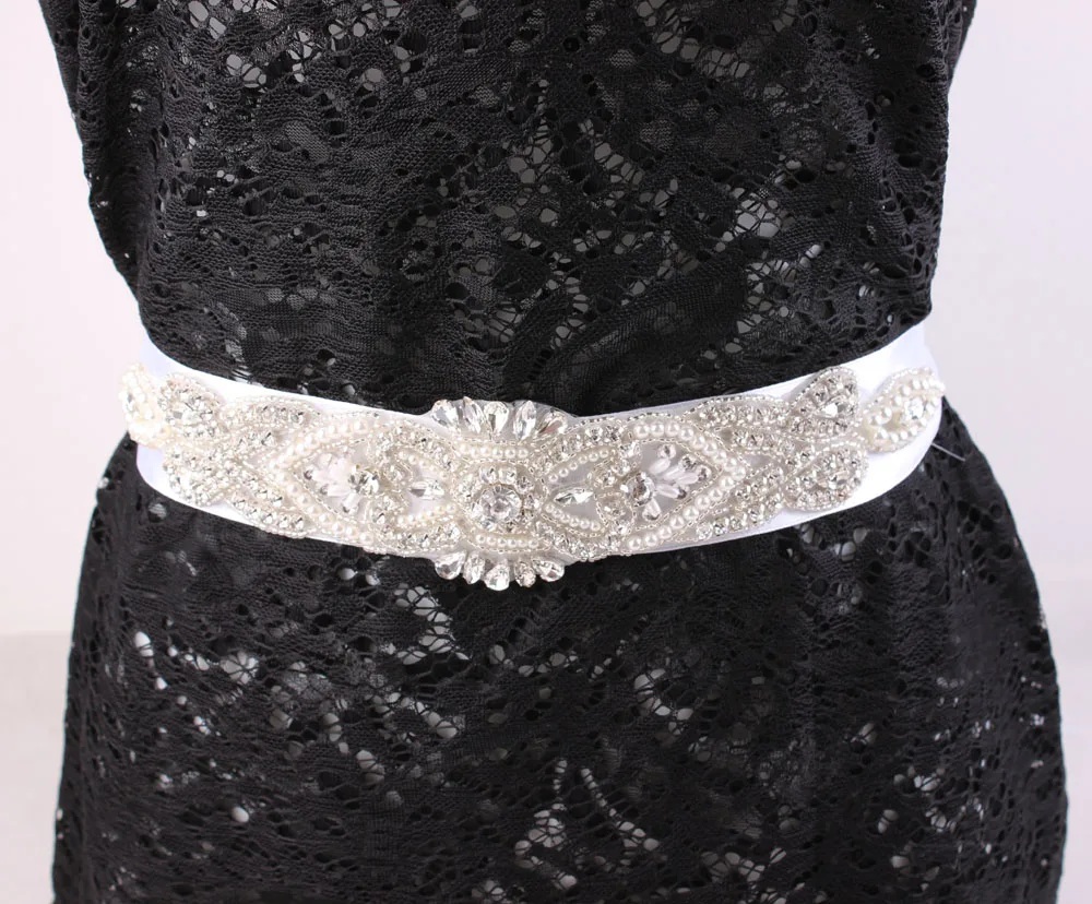 Rhinestone Pearl Wedding Dress Sash : Crystal Wedding Sash