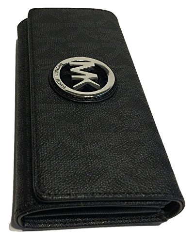 • Michael Kors Fulton Flap Continental Wallet Signature MK Black PVC