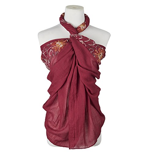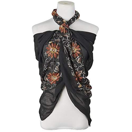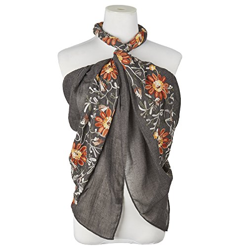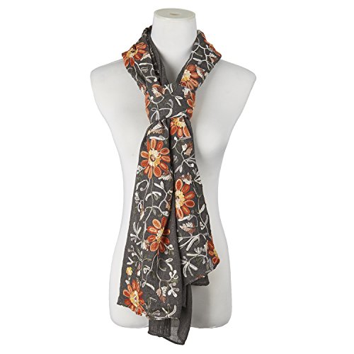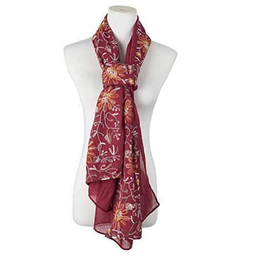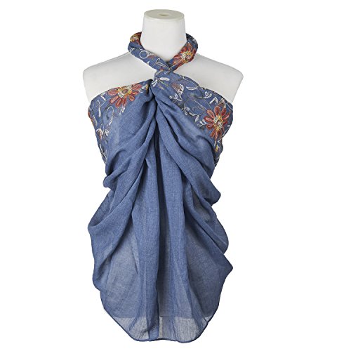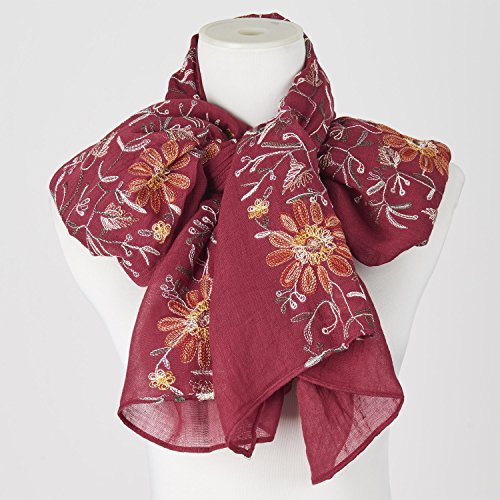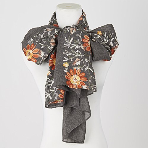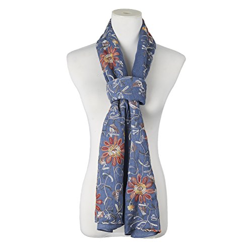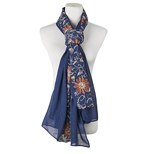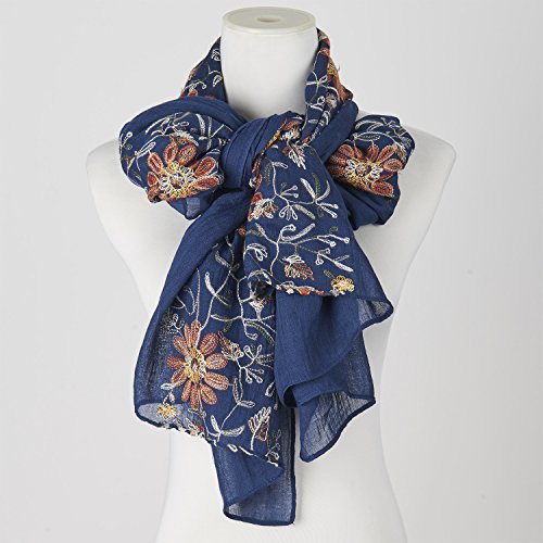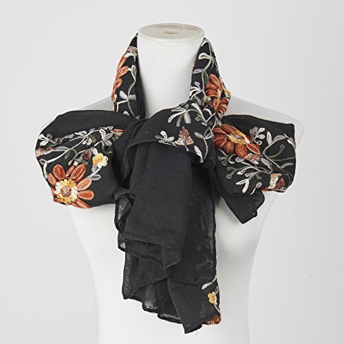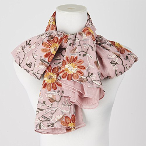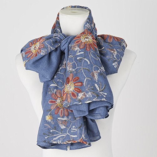 Rural Style Scarf Muffler With Flower Embroidered Distinctive Long Soft Girls