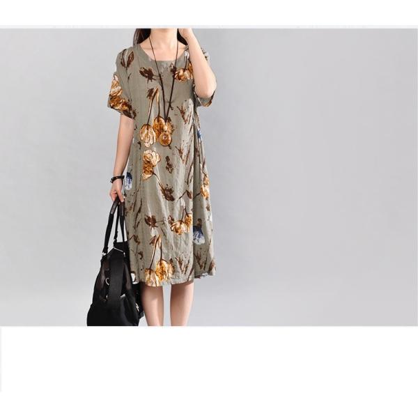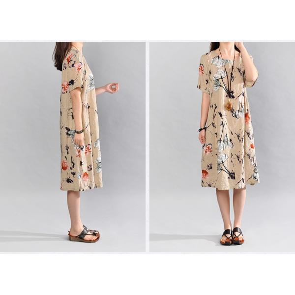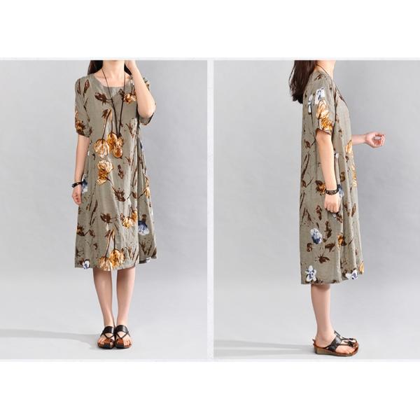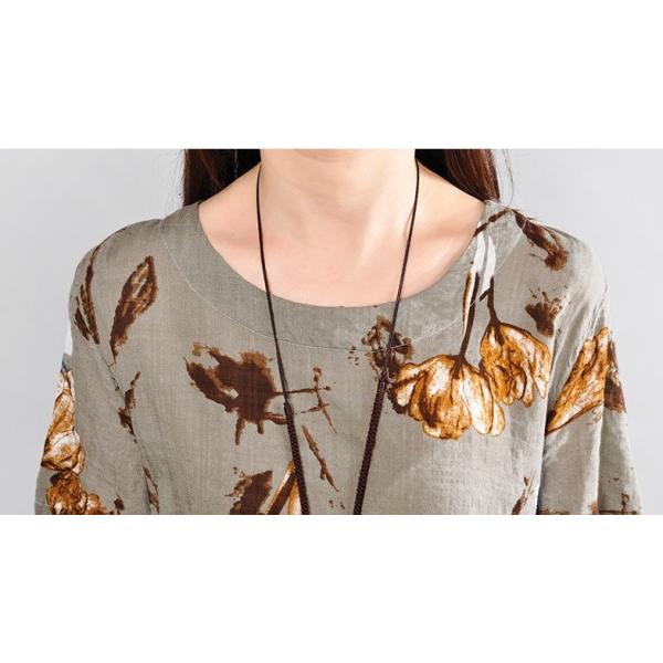 レトロな大人カジュアルプリント柄のロングワンピース。