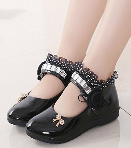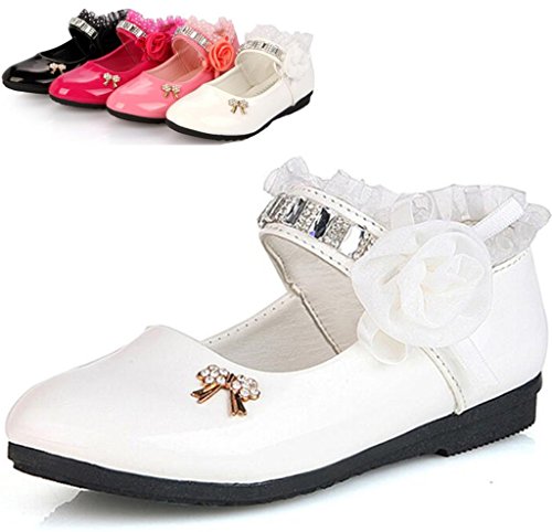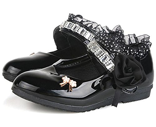 -. Title : DADAWEN Girl's Sweet Flowers Lace Rhinestone Strap Dance Flat Uniform Dress Shoes