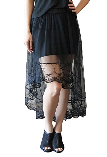 -. Feature : 今期も大人気のチュールレースに刺繍が施されたシースルースカートです。ミニスカートにレースのマキシ丈を合わせたデザインで、トレンドの垢抜けコーデが楽しめます。ヘムラインがロングテールカット(フィッシュテール)のタイプとアシンメトリーなタイプがございます。 / ロング丈ですがシースルーのレイヤーだから重くならず、中のミニスカートをチュールレースが優しくカバーしてくれるので、適度にセクシーでフェミニンになりすぎず、抜け感を演出できる優れもの。 / 合わせるトップスやシューズできれい目からカジュアルもフォーマルも、様々なシーンで活躍しそう。通気性が良く、さらっとしたレースが涼し気で、春夏ヘビロテできそう。 / ウエスト:総ゴム 57-80cm 丈:約90cm 素材:ポリエステル等 サイズ:M トレンドのアシンメトリータイプとロングテールタイプにホワイト・ブラックの2カラー。 / 海外製品のため、若干の誤差や縫製の甘さはご了承くださいませ。