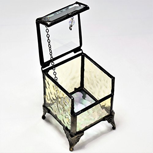 J Devlin Box 649-2 Antique Yellow Stained Glass Jewelry Keepsake Box Trinket Box