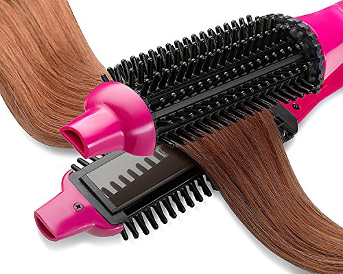 - INNOVATION!: This flat iron/hot brush features 45 second heat up – 3 minutes to max heat – 60 minute auto shut off function for your safety, 360 degree swivel cord for easy maneuvering AND dual voltage compatible for traveling!