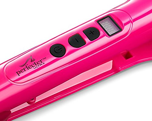 - 420F INSTANT HEAT LCD DIGITAL DISPLAY: Perfecter Ultra flat iron/hot brush combo has 3 temperature settings, 380F, 400F and 420F. Features Digital control, power and temperature. Also features a manual lock option to lock the flat iron closed – which is great when using the hot brush itself or when styling while ironing – so no one should get hurt.