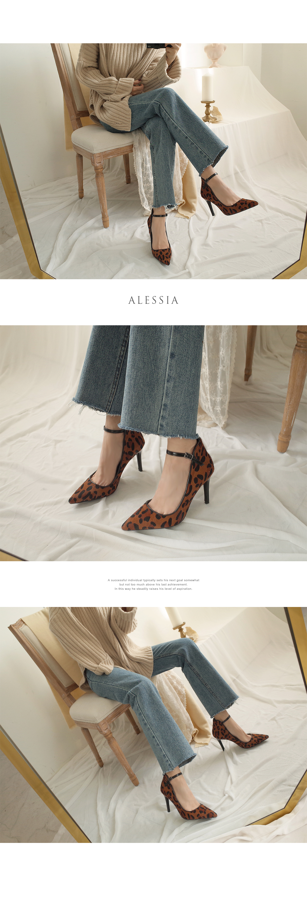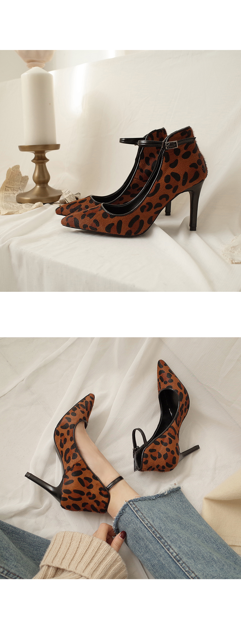 리얼송치의 잔잔한 터치감과 애니멀 패턴이 조화를 이루어 유니크하게 신겨지는 펌프스입니다.