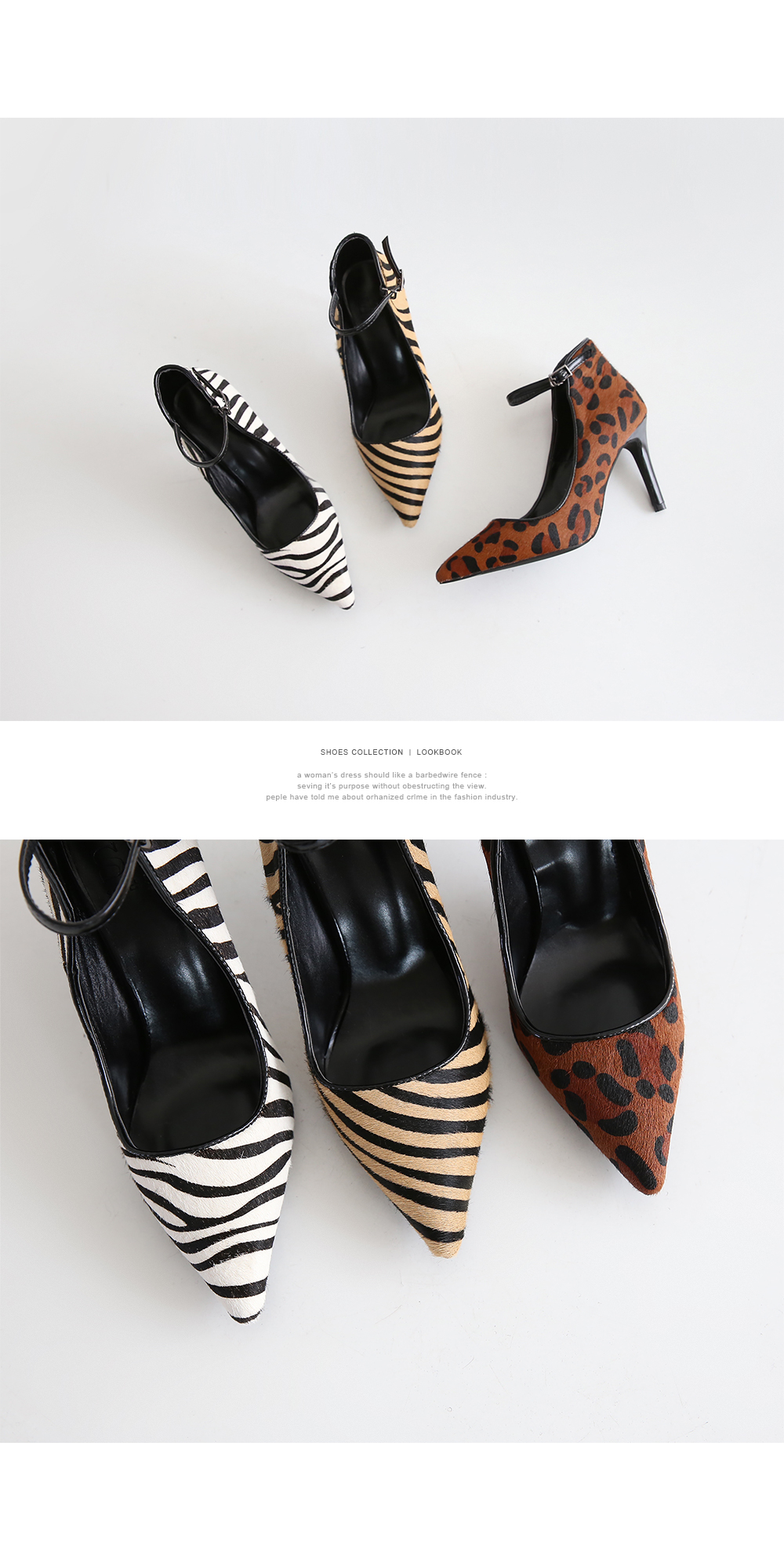 지브라, 호피 패턴이 섹시미를 연출시켜주는 듯 하고 스틸레토 쉐입이 강렬하게 착화됩니다.
