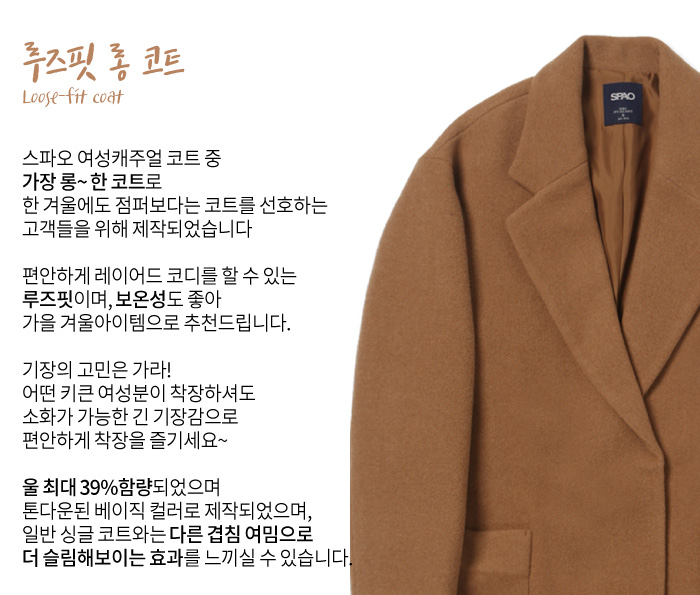[스파오(SPAO)]루즈핏 롱 코트 SPJW74VG04