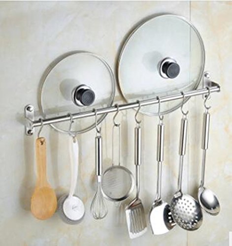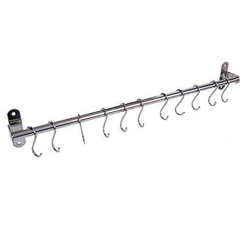 Lebather Removable Hanging Pan Pot Rack With 10 Pcs S Hooks Wall Mounted Heavy Duty Kitchen Tools Utensils Hanger Organizer Lid Storage Organization Bathroom Towel Rack Set ,24 Inch