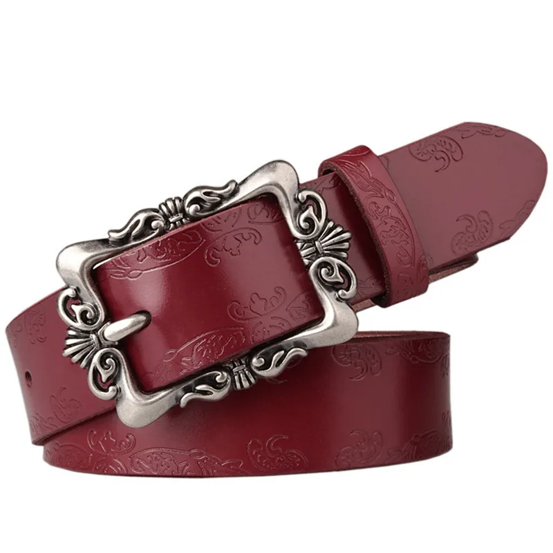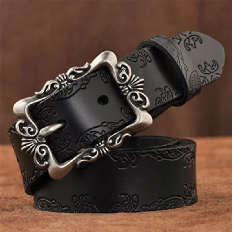 Style: Genuine leather belt women,Vintage leather belt woman Popular elements: Floral Carved Buckle And