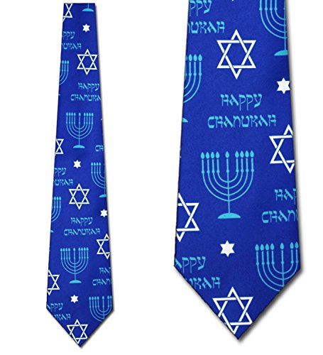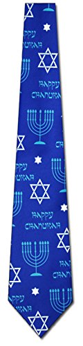 Binding : Apparel Product Description This festive Hanukkah tie is the perfect way to celebrate this holiday season. This Happy Hanukkah Mens Holiday Tie features an allover pattern of a the Star of David, a menorah, and the phrase, "Happy Hanukkah". All of this holiday fun is displayed on a brilliant blue background. Happy Hanukkah! 0