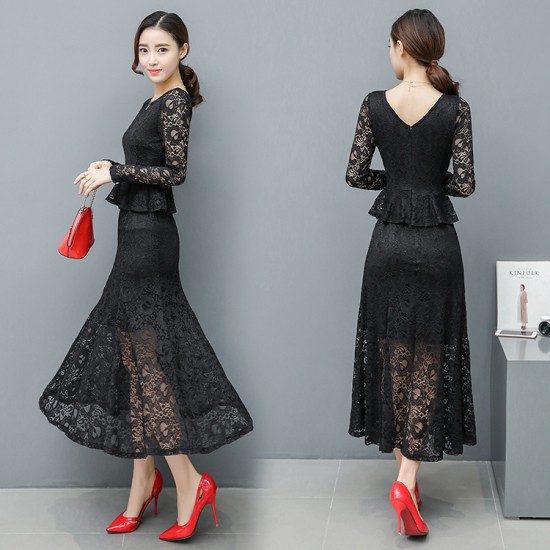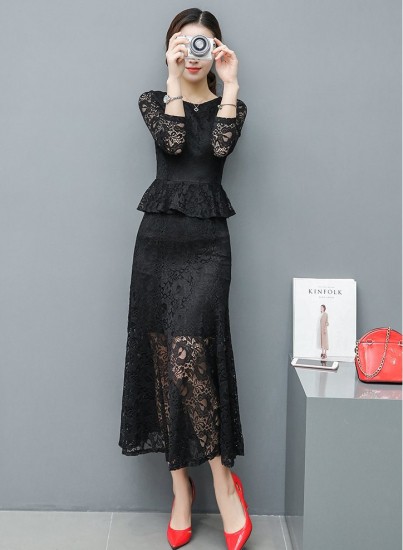 パーティードレス ロング丈 ワンピース シースルー 透け感 長袖 ペプラム セミフレア バックコンシャス 大人 上品 綺麗 お呼ばれ デート drgz2227