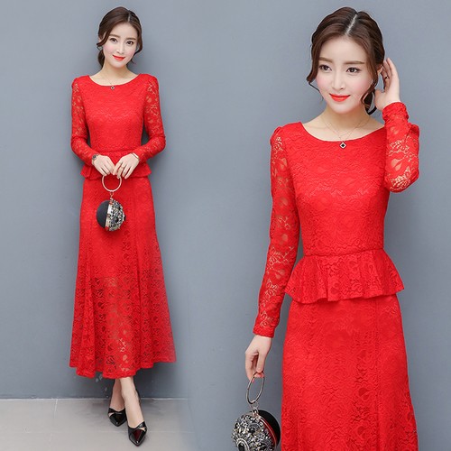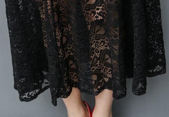 上品なセミフレアが大人キレイなロング丈花柄レースワンピース。