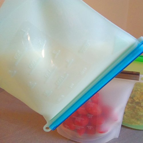 - STAY ORGANIZED - From freezer to micro, from fridge to pot, these reusable silicone bags will save time and keep you and your kitchen organized! Measurements (cups, ml, fl oz) on the bag is a wonderful helper. When not in use, stack them flat and save space in cupboard.