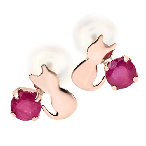 -. Title : K10 ピンクゴールド 猫 シルエット 両耳用 キャット ネコ ピアス スタッド ピアス 雑貨 7月 誕生石 ルビー