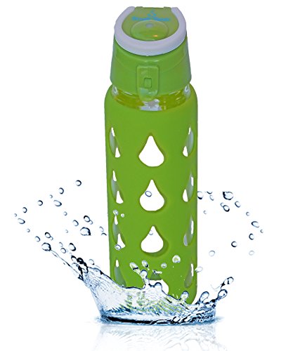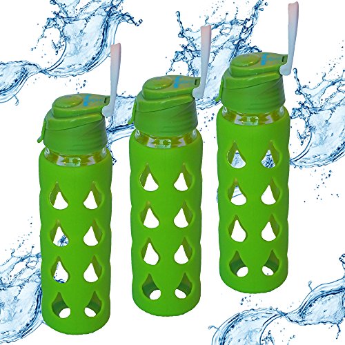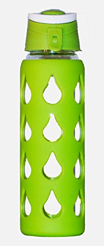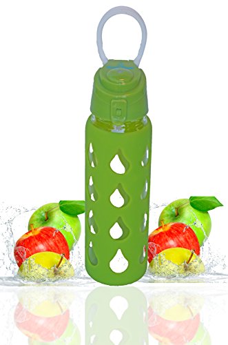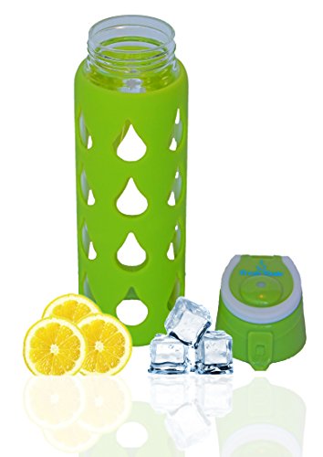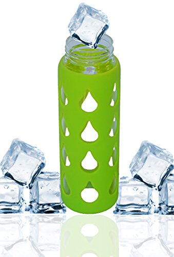 Protective silicone sleeve:This high temperature resistant glass remains durable with the protective silicone sleeve that has been FDA approved. This silicone sleeve allows the glass water bottle to be taken virtually anywhere!