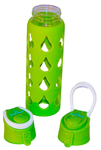 Fresh Taste Wide Mouth Glass Water Bottle allows you to sip colder and more pure fresh-tasting water, juice, sports drink, coffee, tea or your favorite beverage. The beautifully designed bottles are sleek, thicker and sturdier than plastic but still light enough to carry. It is made of borosilicate glass which offers you a fresh pure taste with no leaching from plastics, metals, or liners.