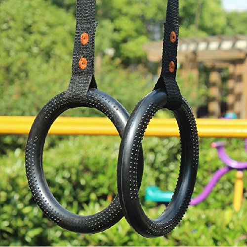 - Feature : SAFE AND STURDY: No buckle design, no buckle slippery or clamp snap problem to worry about. / HEAVY DUTY CAPACITY: Extra Nylon Webbing Straps maximum Loads up to 550lbs, meet most people requirement. / PORTABLE, EASY SET UP AND EASY ADJUST: providing you a great home gym substitute. / HIGH QUALITY GYM RINGS: The textured grip, which will reduce slippage associated with sweaty hands. It's stronger, more durable and of higher quality material. / 100% SATISFACTION GUARANTEE: Buy with High Quality and Lifetime Warranty Guarantee.