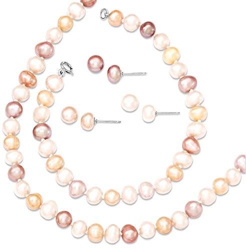 -. Title : ICE CARATS 925 Sterling Silver White Pink Mauve Freshwater Cultured Pearl Neck Bracelet Ear Se Set Necklace Fine Jewelry Gift Set For Women Heart