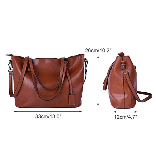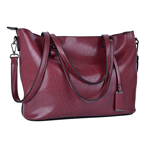 -. Title : Klsyanyo Women Oil Wax Leather Tote Bag Handbags Shoulder Bag Purse Messenger Handle Satchel