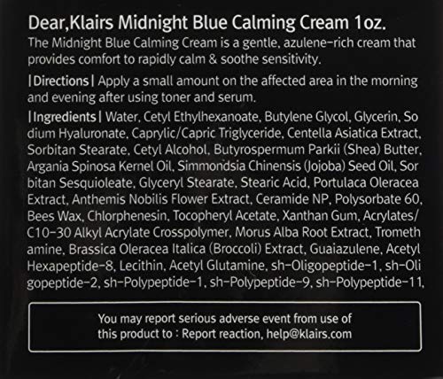 #BlueCream #CalmingBlue #BlueRepair 保湿だけでは敏感肌には足りない場合は、 刺激とストレスからあなたの肌を保護するためにリアルブルークリームを満たしてください。 [特徴] 非常に敏感な肌のバリアを落ち着かせ、強化するのに役立つクリームとして、 ラインをなだめる、それは刺激された(熱か皮脂によって)、強調された皮をなだめ、調整するために急速に働く。 Rich Moist Soothing Lineとその刺激のない、心を落ち着かせ、なだめるような効果が合わなかった場合あなたの期待とニーズに合わせて、そのトータルケアのためにKLAIRSのミッドナイトブルーカーミングクリームを試してみてください。 KLIARSのミッドナイトブルーの心を落ち着かせるクリームは狭い領域をターゲットにするために使用されますが、 少量で広い範囲をカバーできるように、優れた広がり性を備えて設計されています。 ほんの少しで高い効果と満足感をお楽しみください。