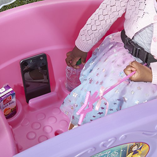 -. Feature : Stay cool and comfortable on long walks with the removable Princess shade canopy! / Oversized Chariot door allows for little ones to easily enter and exit this kid's wagon / Kid's Chariot wagon features whisper wheels for a smooth and quiet ride around the neighborhood / Large, easy-pull handle folds and locks into place underneath the Disney Princess wagon for quick storage and easy transportation / Kids pink wagon includes 2 seats with seat belts and 2 drink holders