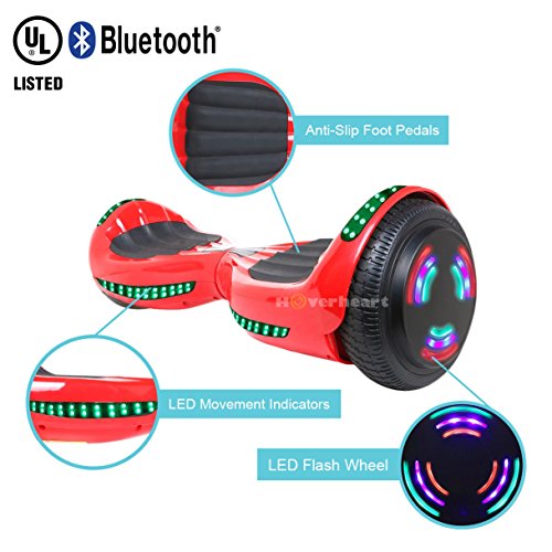 Flash Wheel UL 2272 Certified Hoverboard 6.5" Bluetooth Speaker with LED Light Self Balancing Wheel Electric Scooter - Chrome Blue Hoverheart Hoverboard is Now UL 2272 & Certified (E492035) as Safe! If you're in the market for a Hoverboard make sure it's UL 2272 Certified, otherwise it's unsafe and is likely to overheat or even catch fire. This Hoverboard is extremely easy to ride, most riders learn how to ride it in less than 5 minutes! Manufactured at the highest standards, this self balancing scooter was built for longevity. Two wheels self balanced electric scooter This scooter uses gyroscope sensors to enable self-balancing. The inner workings of the scooter use gyro sensors and a set of rechargeable Lithium-ion batteries. Users can control the vehicle to go forward, accelerate, decelerate , break or others, by leaning forward or leaning backwards. It can be easily carried around on bus or subway.Feature