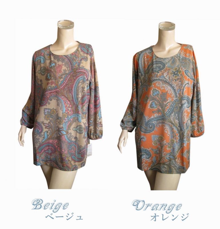 ペイズリーフラワー柄の大人の表情が漂うチュニックです。