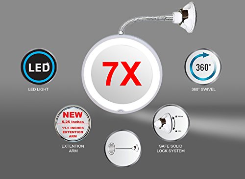 ? POWERFUL 7X MAGNIFIED MIRROR WITH LIGHT: This 7x Magnification lighted makeup vanity mirror with lights. This mirror allows you to focus on specific areas of your face. Perfect for a flawless make up application or removal. Soon to receive our New Makeup Mirror 3x magnification and 10x magnified mirrors.