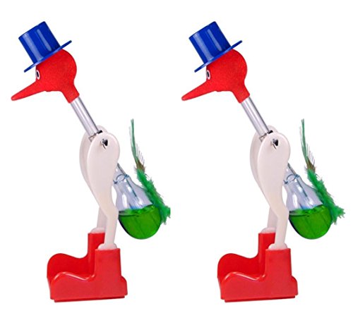 Studio : Drinking Bird Publisher : Drinking Bird Binding : Toy Product Description Drinking Bird. A rather dumb looking 6" bird with a felt covered head and has plastic feet. Worse, he cannot get his fill of water. You buy the drinks. Fluid inside condenses from the evaporative cooling of the water off the bird's beak, making it top heavy and dunking it back into the water. The condensation rejoins the liquid pool in the bird's bulb, and he tips up again. Process continues indefinitely. WARNING! The fluid and dye inside the bird can permanently stain, and the bird's glass body can easily be broken. Children are fascinated by the bobbing bird, and the educational possibilities are great. But they should watch it, not fondle it!! 0