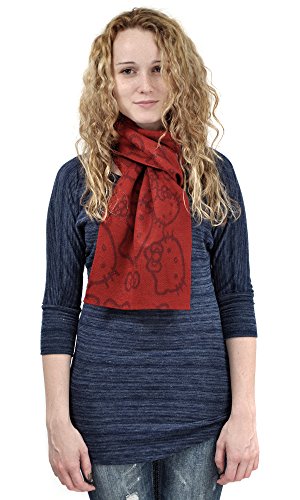 Hello Kitty women's knit scarves. Assorted print designs. 100% acrylic. Soft knit fabric. 68" long by 10" wide. Officially licensed.