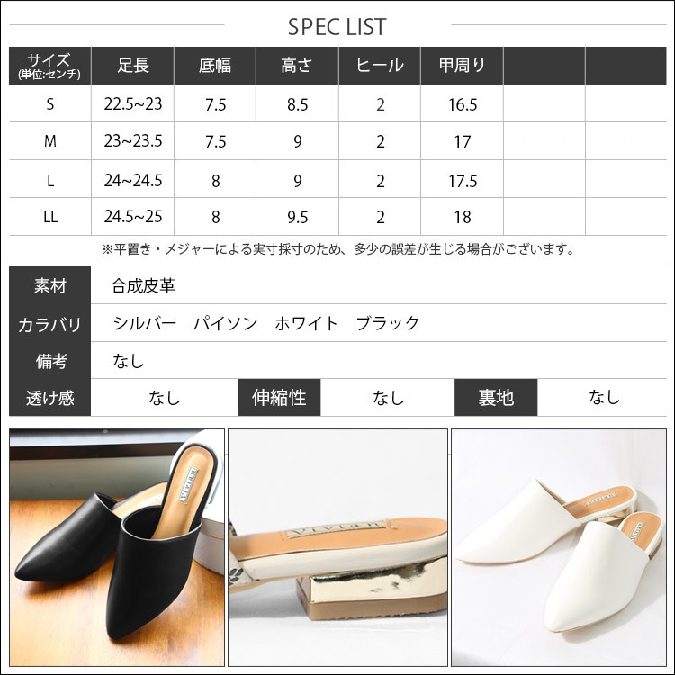 LL:足長 24.5-25cm 底幅 8cm 高さ 9.5cm ヒール 2cm 甲周り 18cm