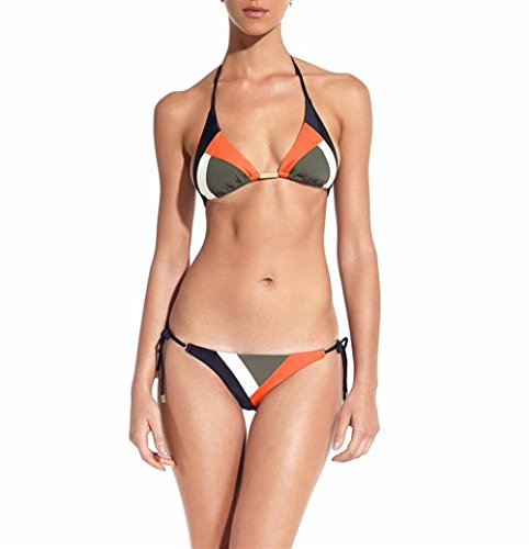 Binding : Apparel Product Description Package include: 1Set Swimwear (Containing Chest Pad) NOTE: Please compare the detail sizes with yours before you buy!!! Use similar clothing to compare with the size HOW TO MEASURE FOR TOP Your Band Wearing a non-padded, non-minimizing everyday bra, measure just above the bust by bringing a soft measuring tape across your back at band level, under each arm (elbows down), then around the front to snugly but comfortably line up with where your bra straps meet your cups. TIP: Odd number or on the half inch? Round down to the nearest even number. TIP: Did you measure yourself below the bust instead? Follow our guidelines for above-the-bust measuring before entering your Band Size into the Perfect Fit Calculator. Your Bust Measure across the fullest part of the bust by threading a soft measuring tape across your back at band level and under each arm, being careful that your elbows are down and that the tape isn't pulled away from the body in the front. With the tape in position, take a breath in and out, allowing it to slide to its most comfortable, non-binding fit. TIP: If the measurement falls on the half inch, round up. HOW TO MEASURE FOR BOTTOM Waist Measurement Bend to one side to find natural indentation in torso. This is your natural waist. Run tape around natural waistline, keeping tape parallel with floor and one finger between body and tape for a more comfortable fit. Hip Measurement Stand on a level surface with feet together. Measure around fullest part of hips and bottom (approximately 7"-9" below waistline), keeping tape parallel with floor. 0