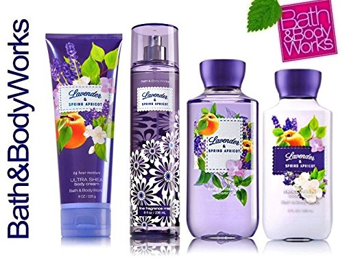 -. Binding : Misc. -. Brand : Bath & Body Works -. Color : purple -. EAN : 3757157786512 -. Feature : Bath & Body Works LAVENDER & SP.R.ING AP.R.ICOT Breathe in a blend of lavender leaves, aP.R.Icot & Lady Gala apple / Shower Gel Size:10 fl oz / 295 mL -Fine Fragrance Mist Size:8 fl oz / 236 mL - Body Lotion Size:8 fl oz / 236 mL - Body Cream 8 oz / 226 g. / Online Only -. IsAdultProduct : 0 -. Label : Bath & Body Works -. Manufacturer : Bath & Body Works -. MPN : LAVENDER & SP.R.ING AP.R.ICOT -. PackageQuantity : 1 -. PartNumber : LAVENDER & SP.R.ING AP.R.ICOT -. ProductGroup : Beauty -. ProductTypeName : BEAUTY -. Publisher : Bath & Body Works -. Studio : Bath & Body Works -. Title : Bath & Body Works LAVENDER & SP.R.ING AP.R.ICOT Deluxe Gift Set Lotion ~ Cream ~ Fragrance Mist ~ Shower Gel Lot of 4