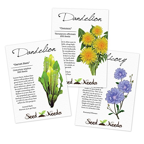 This assortment includes, Dandelion (Taraxacum officinale) Chicory / Italian Dandelion (Cichorium intybus) and Garnet Stem Dandelion (Cichorium intybus)