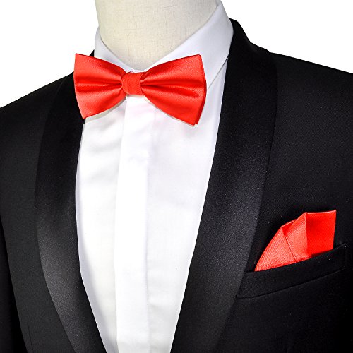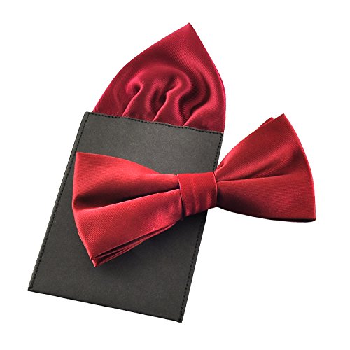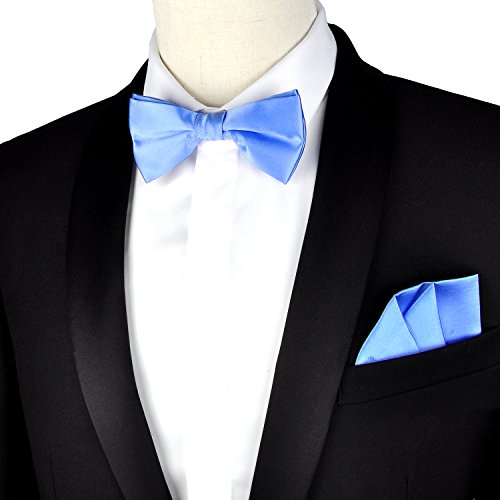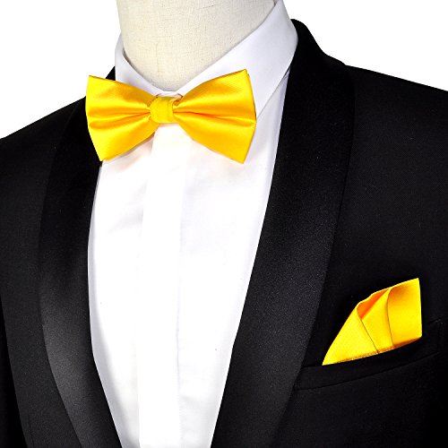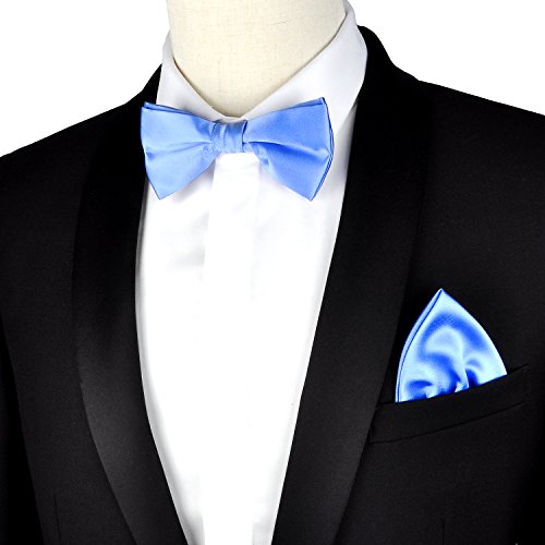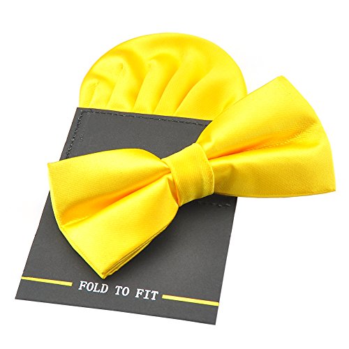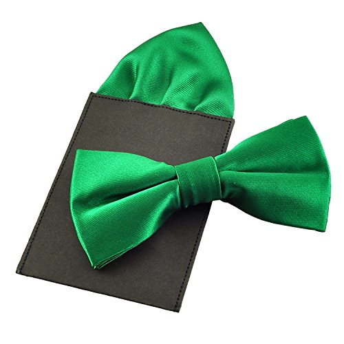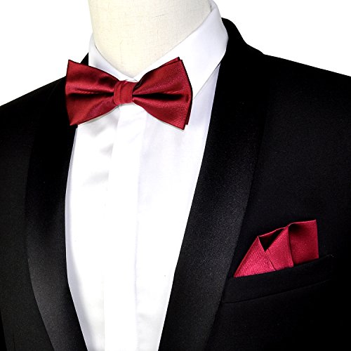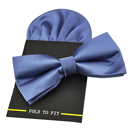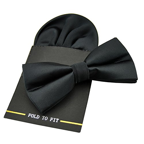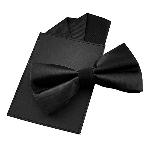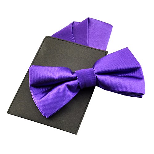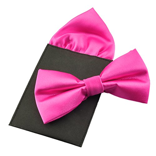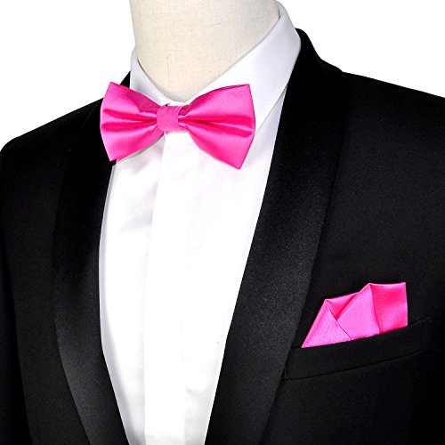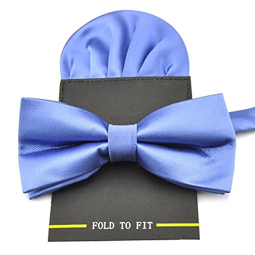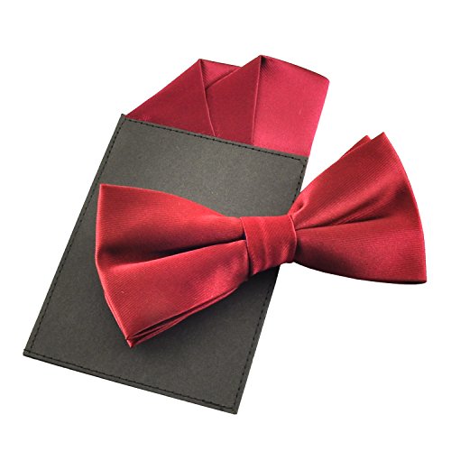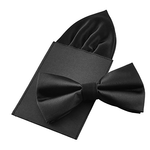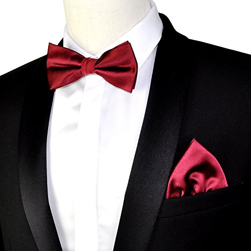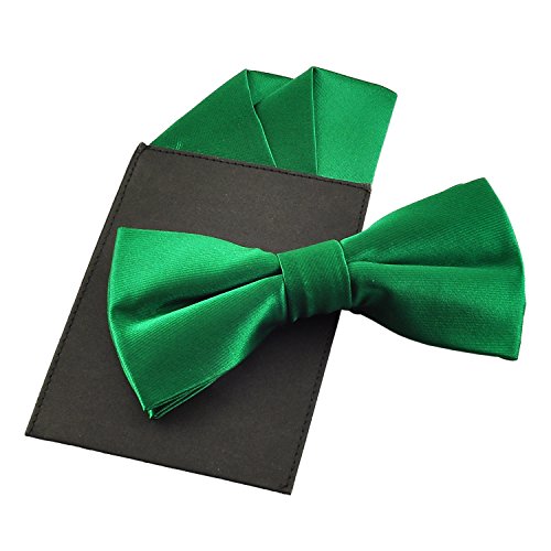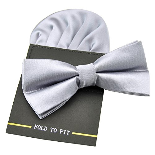 | (PenSee)/Accessories/Ties/DIRECT FROM USA/PenSee Mens Silk Solid Pre-Tied Bow Tie Hanky Card Set - Various Colors |